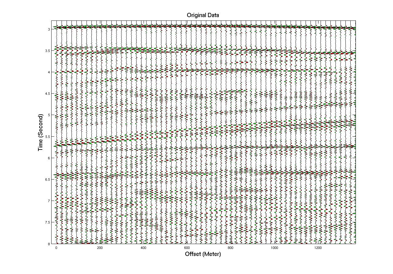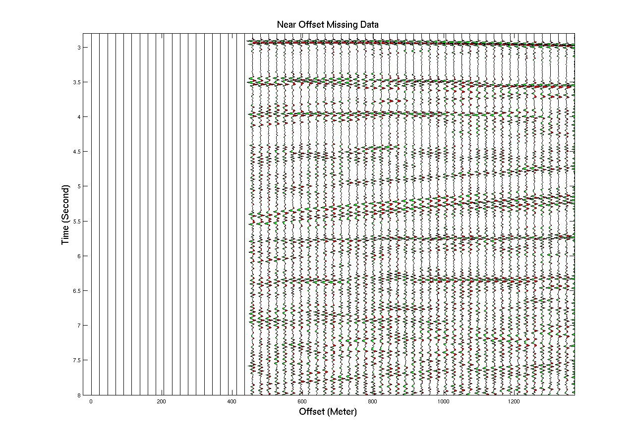 - We use the 319th shot gather as the original data and remove the first 20 traces of this shot as the nearoffset missing data.